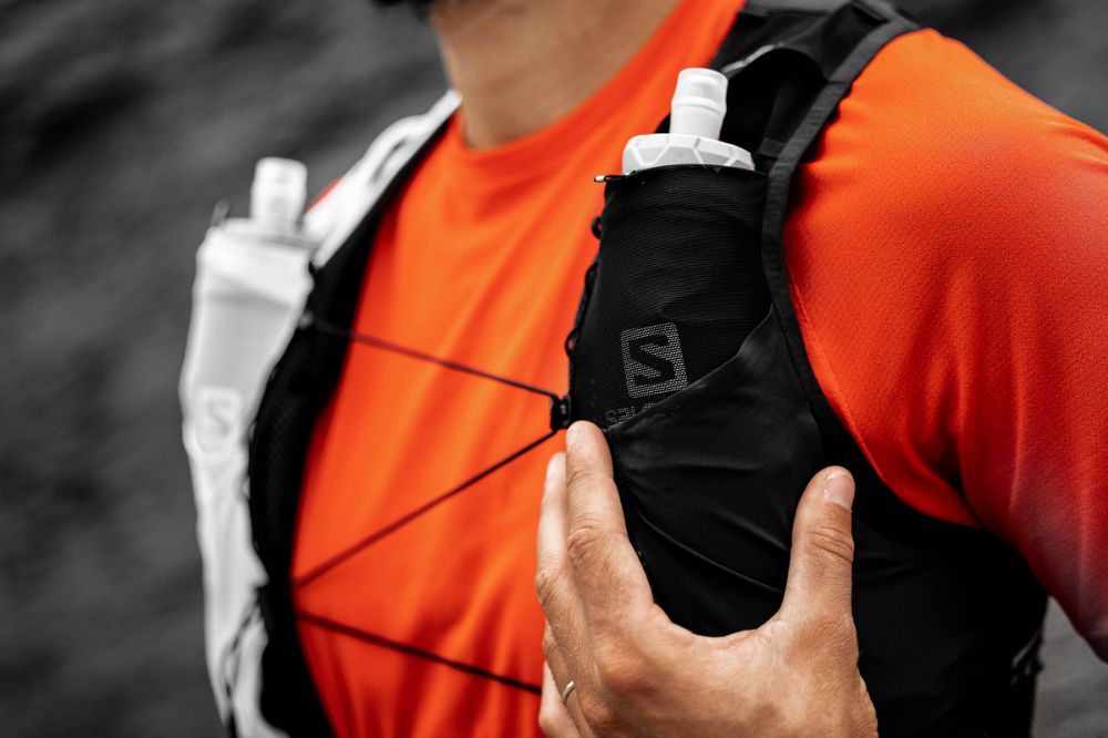 Compatibles amb els bidons blans de Salomon, aquestes butxaques frontals limiten el rebot. Les precadires elàstiques superiors protegeixen els bidons i els posen a la teua disposició per a beure.